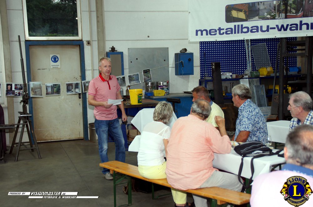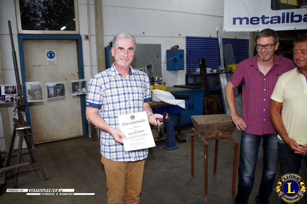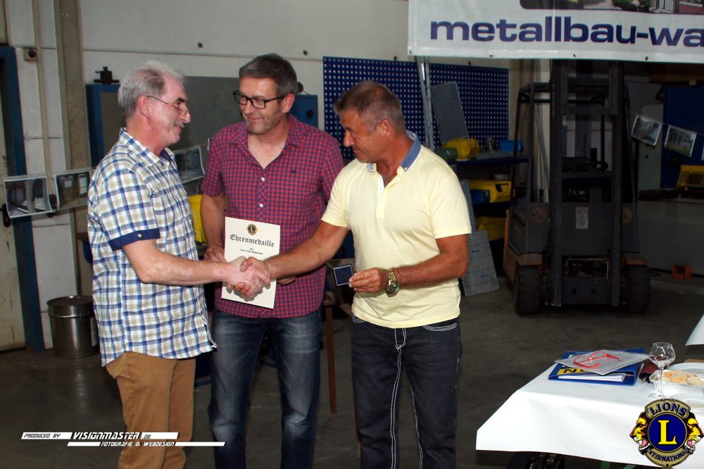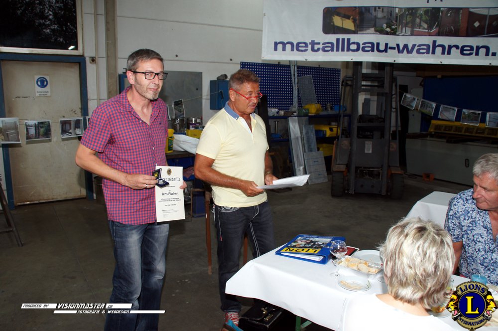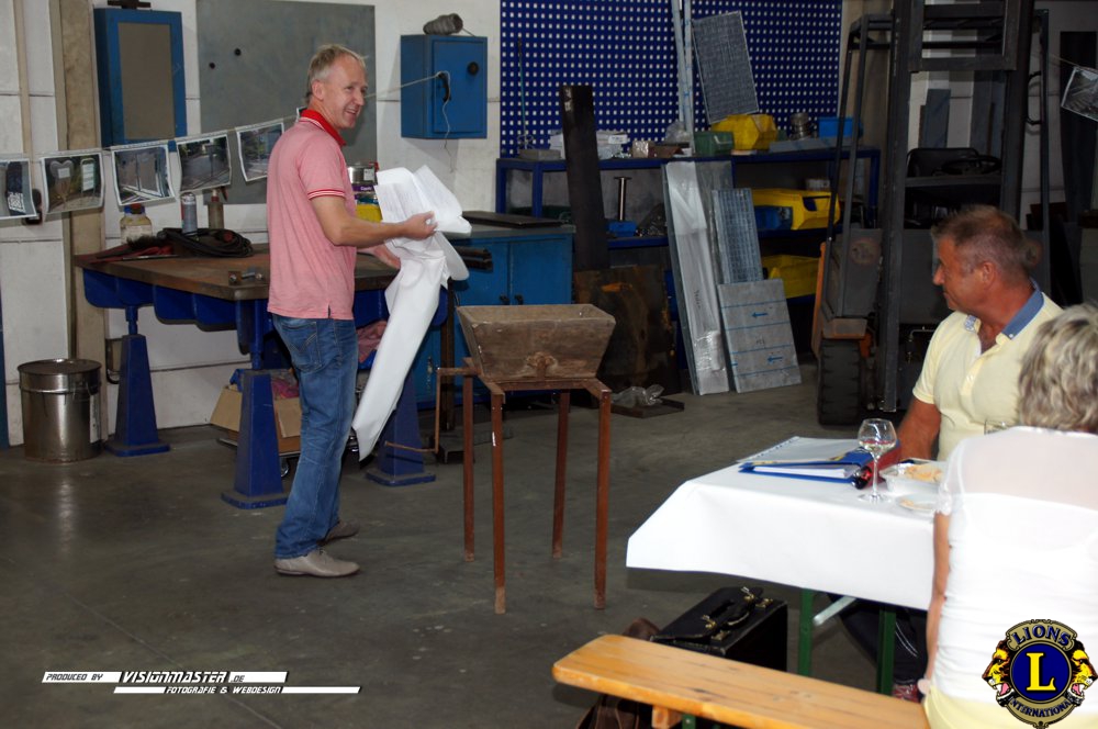 (WK) Am 14.09.2016 folgten wir der Einladung unseres LF Andreas Wahren in seine Firma die er in 3.Generation führt. Wir erfuhren viel Interessantes aus der Firmengeschichte und dem Aufgabengebiet der Schlosserei & Metalbau Wahren. Andreas und seine Familie verwöhnten uns mit kulinarischen Leckerbissen auf höchstem Niveau. Des Weiteren übergaben wir die Lionsmedaille für Verdienste um die Stadt Weißenfels an den Goldschmiedemeister Jens Fischer der sich als 5.Lions-Medaillen-Inhaber mit seinem ehrenamtlichen Wirken verdient gemacht hat.