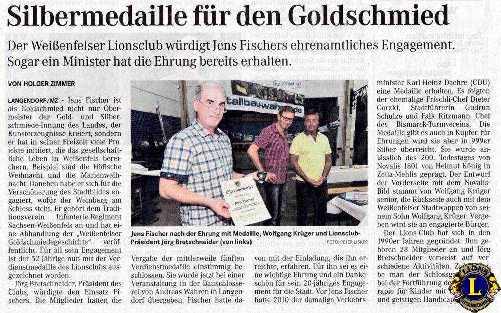 Zu Gast bei LF Andreas Wahren - Lionsmedaille für Jens Fischer